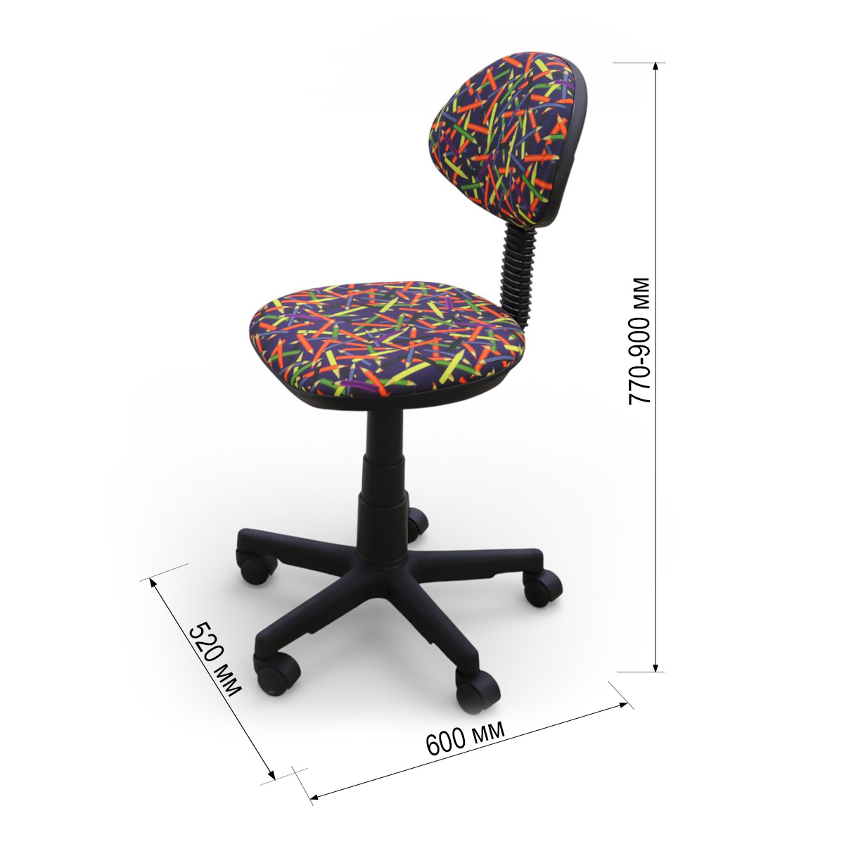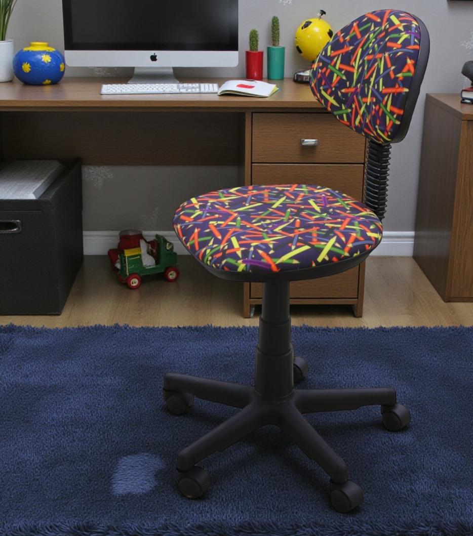 —Кресло Логика (пластик WH,Ткань, KiD'S, №16 (карандаши),О,PL 540, б/подл, ролик белый)