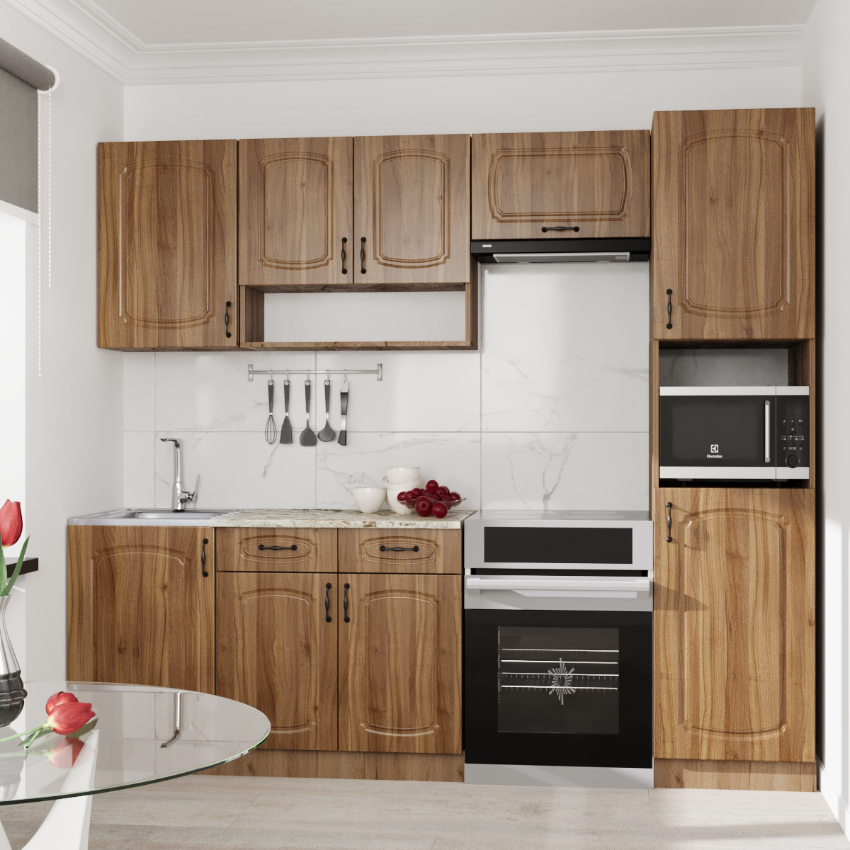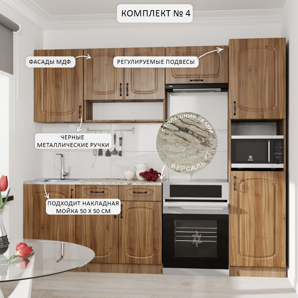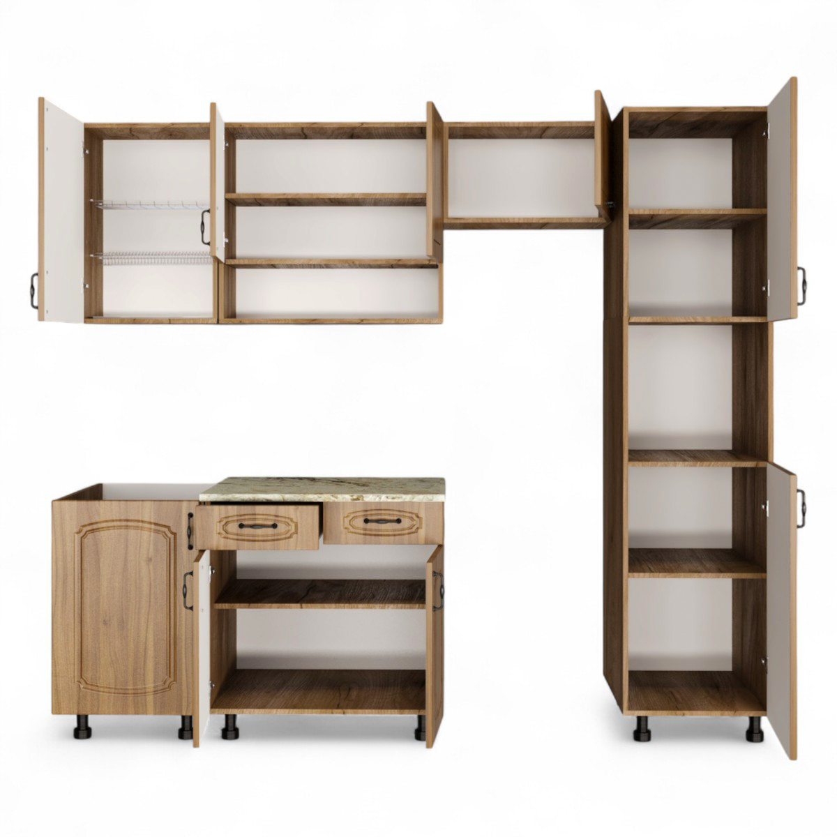 —Кухонный гарнитур №4 Дуб крафт табачн./Орех антик (столеш Версаль+Сушка+планка) 1,8м
