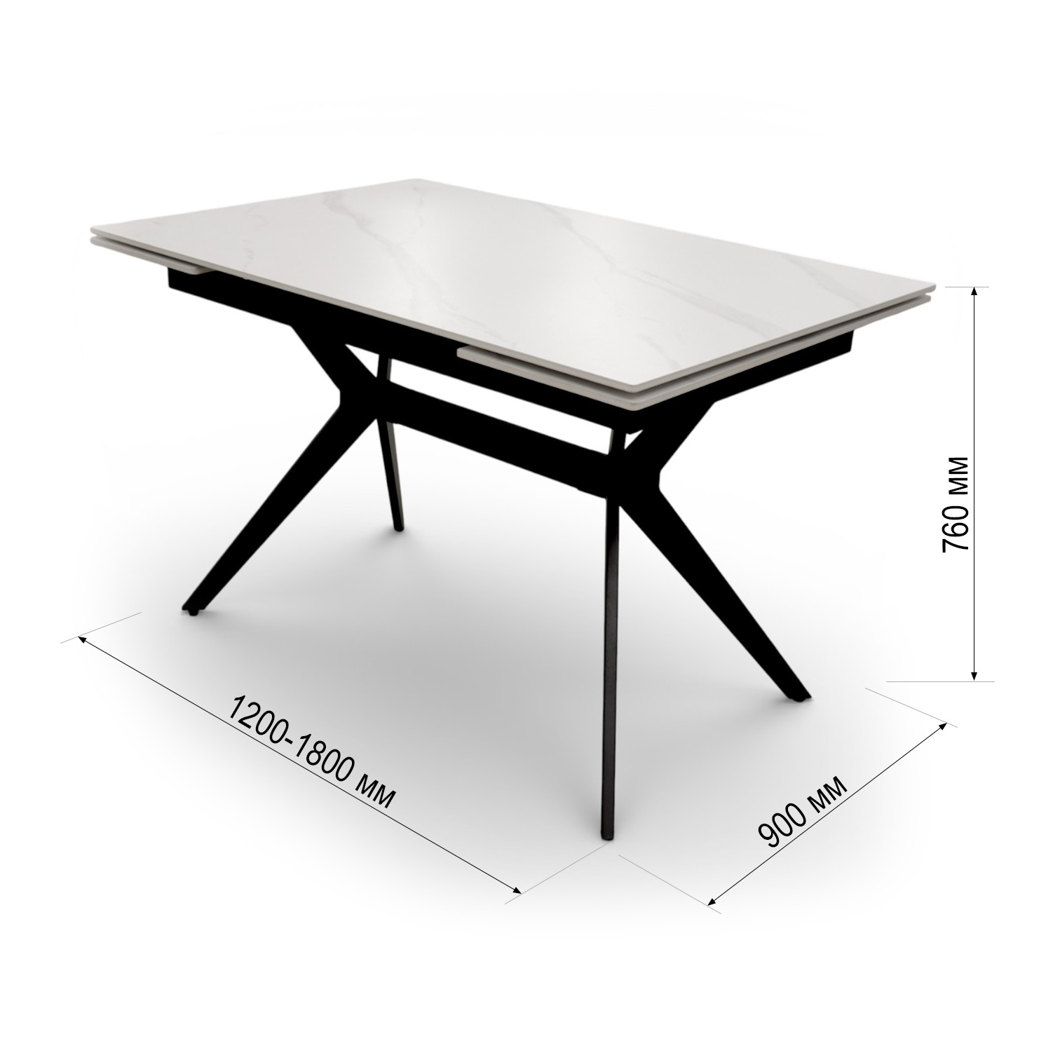 —Стол DTM 0412 CS, 120+30+30*80*76,Керамика цвет мрамор белый Y15, ножки черные
