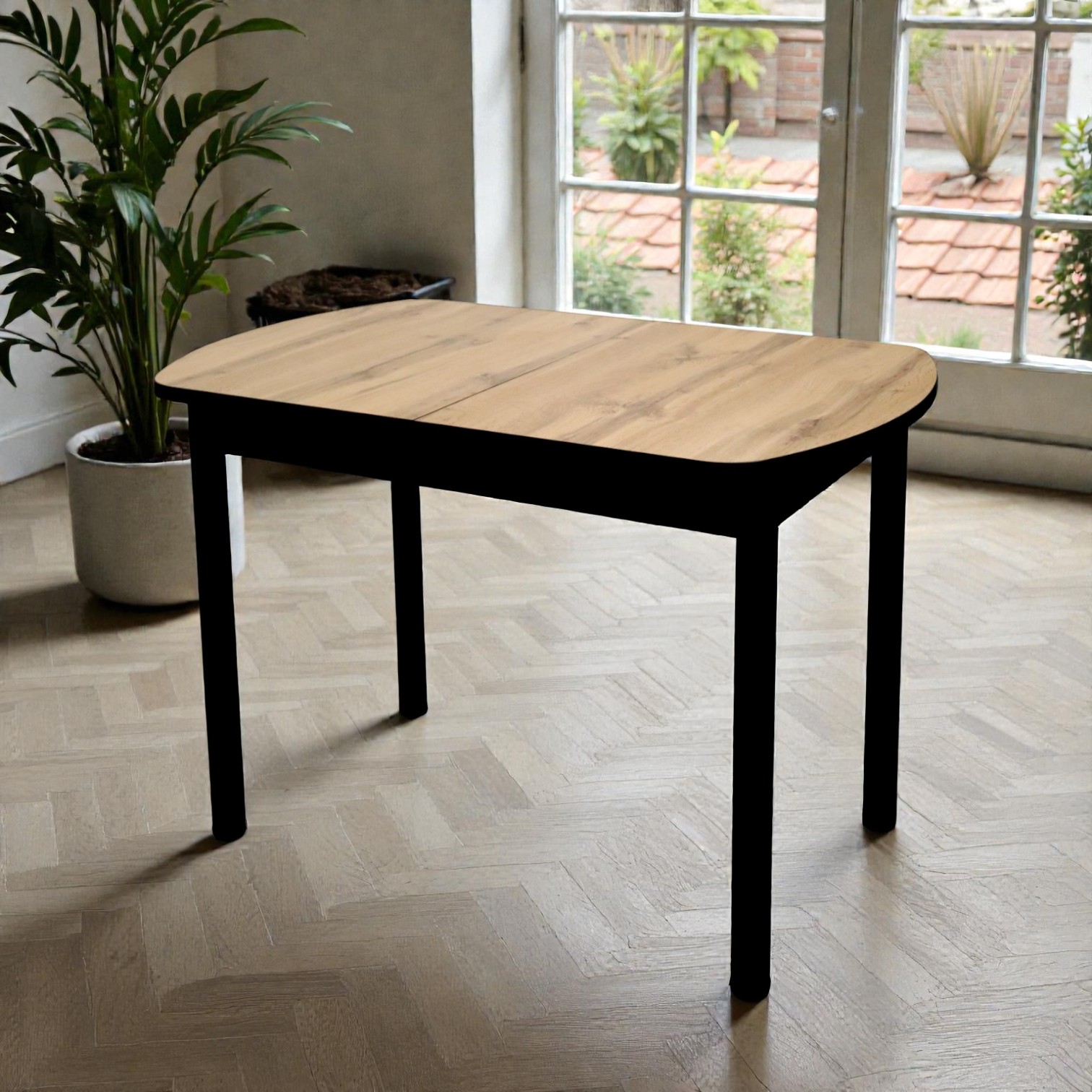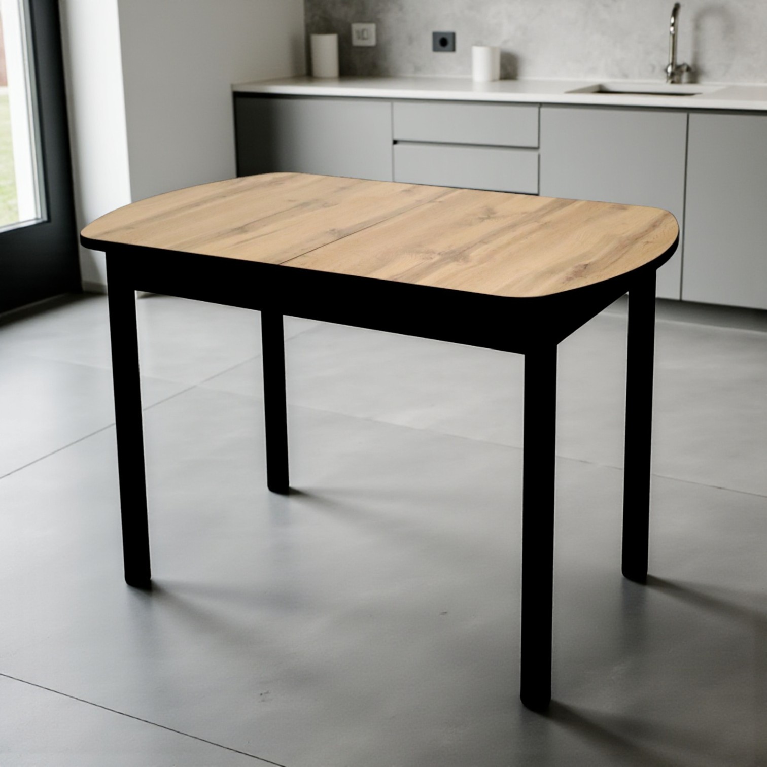 —Стол Фаворит 1100(+400)*700 Пластик Дуб Вотан,бабочка(B5)/ЛДСП Бодега темная+опоры(черн)