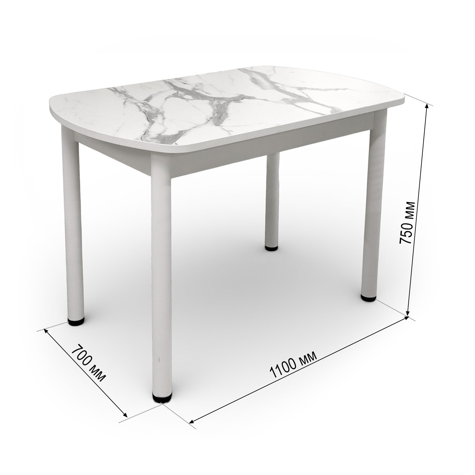 —Стол Фаворит 1100*700 Пластик Мрамор белый,(B5)/ЛДСП Белый+опоры(Белый)