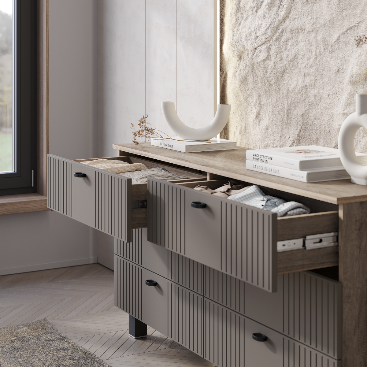 Комод «Олива» КМ-04: Элегантность и порядок в каждом ящике