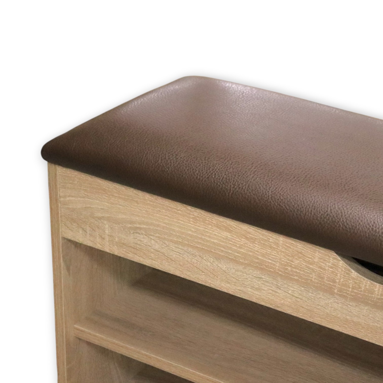 Тумба для обуви БН-196-04 (900*310*510) дуб сонома/кожзам 305-02 корич