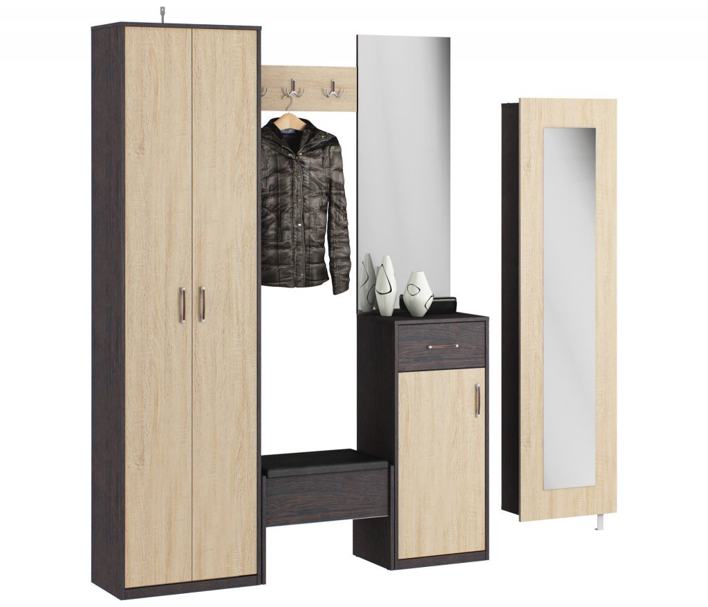 Для решения вопроса с местами для хранения вещей, а также эргономичного и уютного пространства применяются модульные прихожие от различных производителей. Они оптимально подходят для просторных комнат, а также узких коридоров. На выбор клиентов, подбирающих модульную мебель для прихожей, представлен широкий ассортимент коллекций, изготовленных из качественных материалов, выносливых к прямым солнечным лучам, контакту с влагой во время влажной уборки.Что же включает набор мебели для прихожей? Как правило, это вертикальный высокий шкаф-пенал, открытые крючки для верхней одежды и тремплей на вертикальных ламелях, полки для аксессуаров. Дополнительно предусмотрены полки, калошницы, выдвигающиеся шкафы.