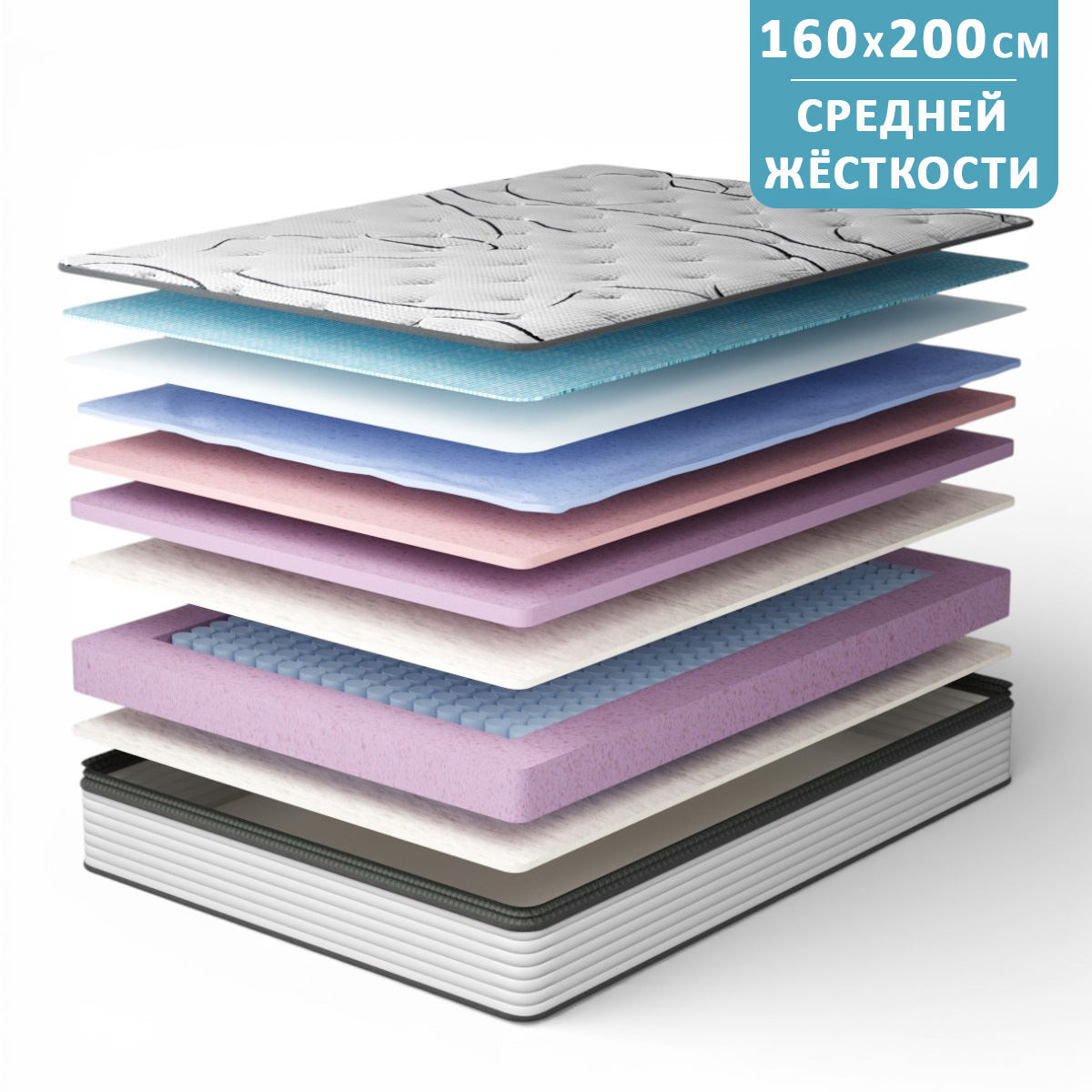 комфортная пена → гелевый memory-foam → 5-зональный блок Pocket Spring с периметральным пенопоясом (