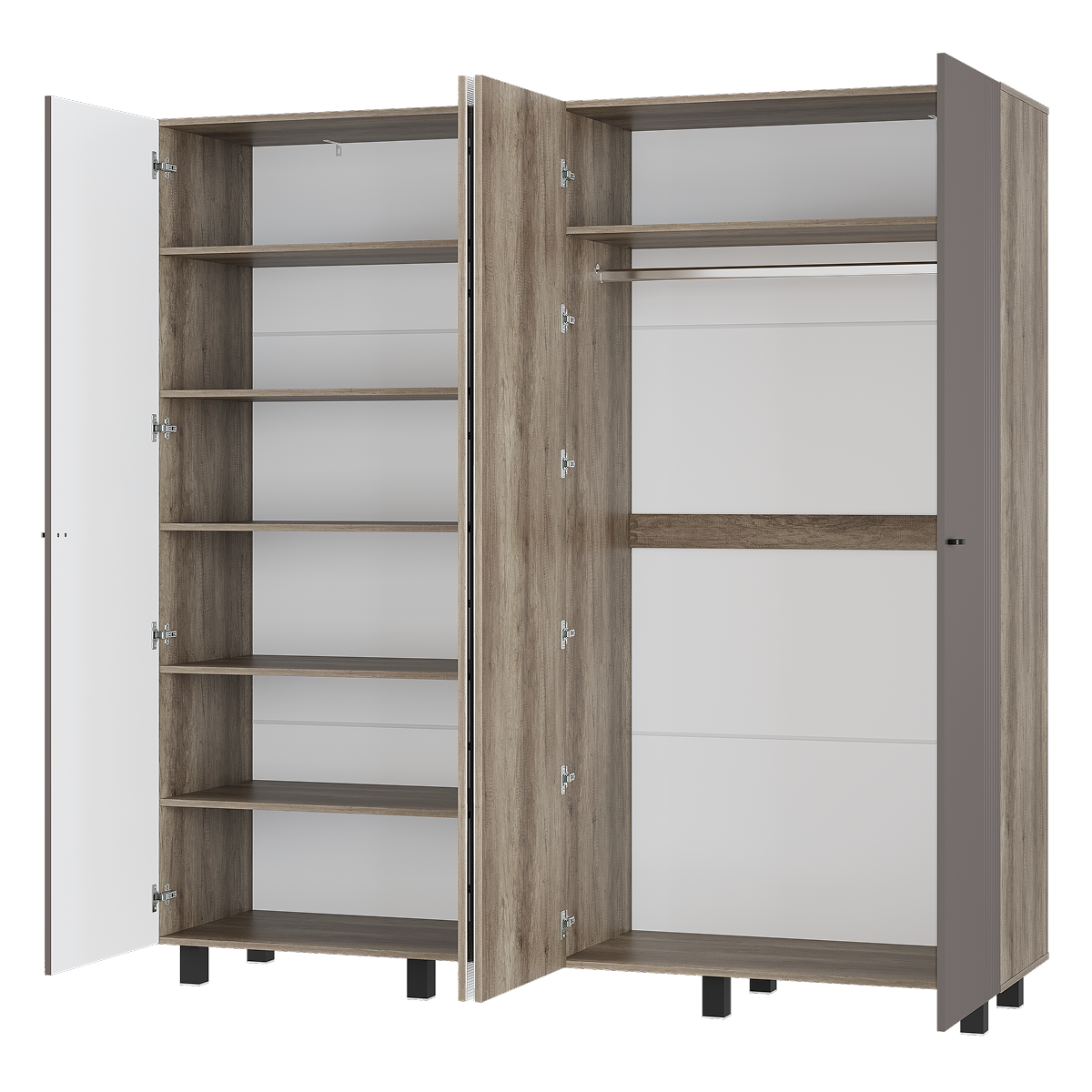· Вместительность: Четыре просторные створки, множество полок, две штанги и выдвижные ящики.