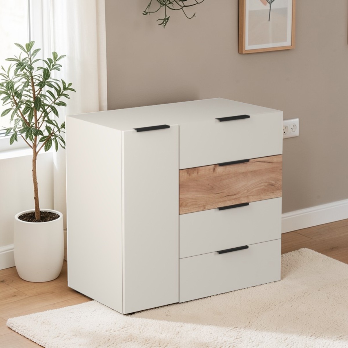 —Комод Севиль 1дв.4ящ./ Кашемир/Дуб крафт